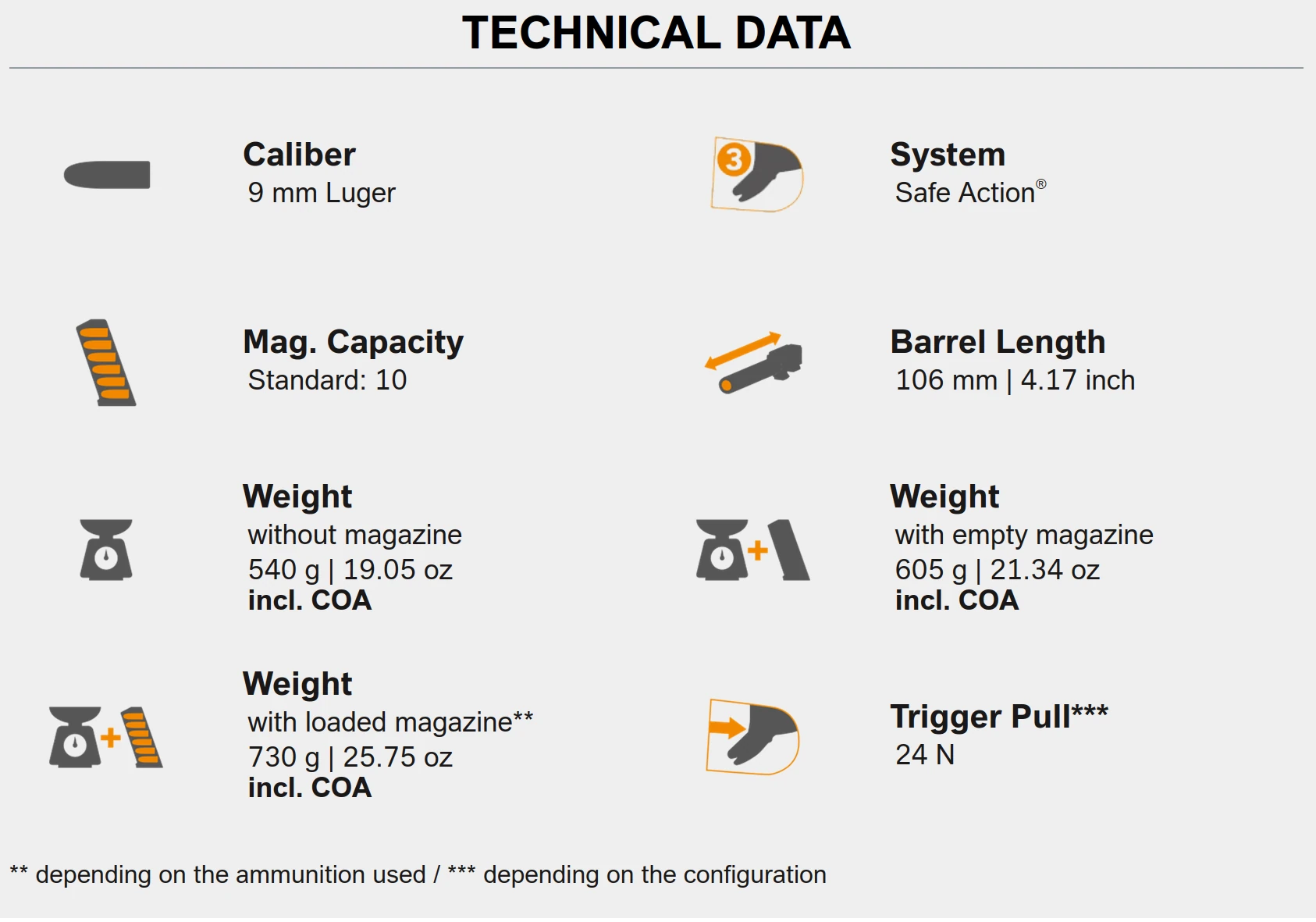 Grundwaffe ohne Zubehör. Abgebildete Anbauteile, Holster oder Magazintaschen sind separat erhältlich und dienen lediglich der Illustration.