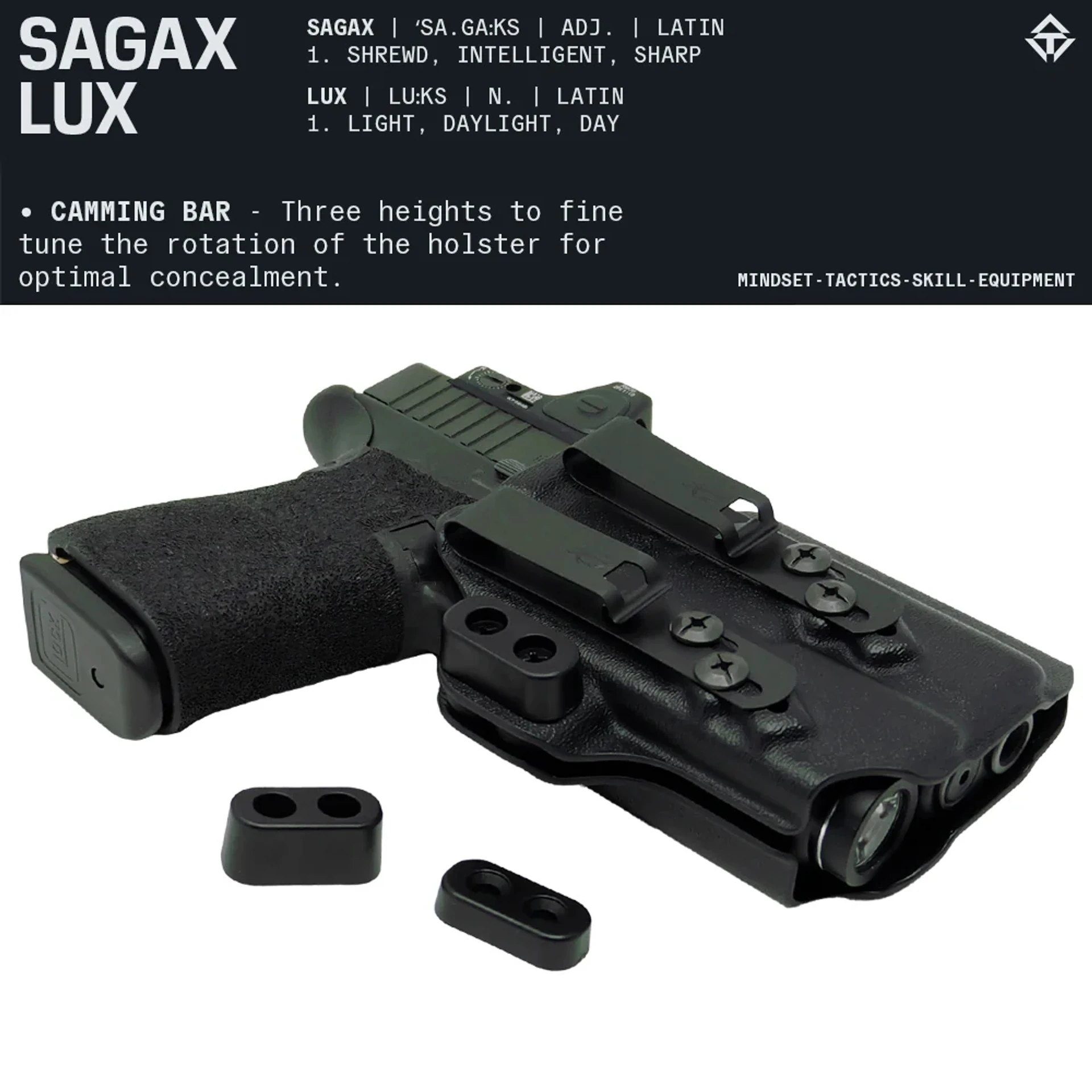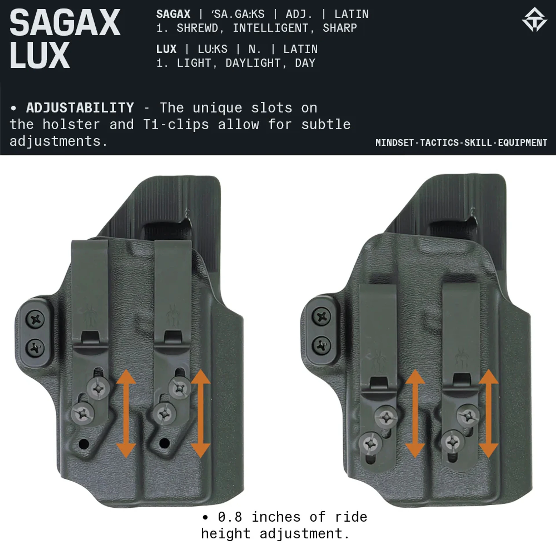 - Front Serrations (FS): Zusätzliche Griffflächen für schnelles und sicheres Handling.