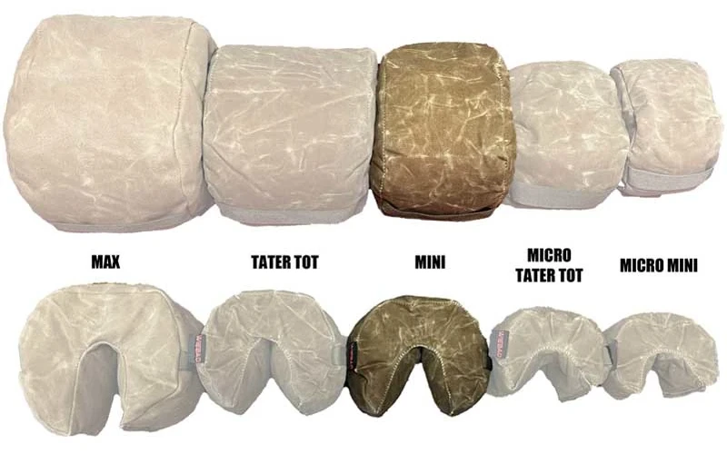 The MINI Fortune Cookie also known as the PUPPY is one of our original products and a shooter favorite. Based on the same Thin Wax Canvas as the Tater Tot and provides the same advantages on a smaller footprint. The side panels are based on a 7” circle while the width of the body is 5”. Thin Wax Canvas is utilized for this product to allow for maximum conformity to prop of various shapes and rifle.